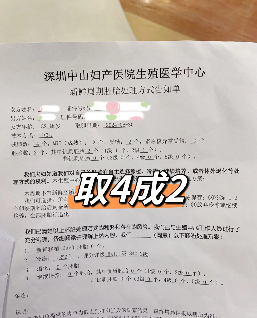 发现冷冻胚胎变成3管,4个!