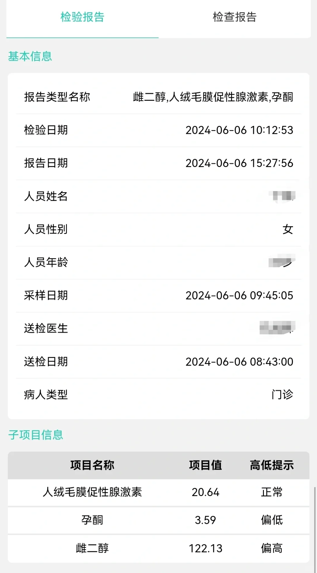 去了附近的医院,医生了解了我的情况后说孕酮这么低不建议打,先观察两天,看HCG值有没有翻倍,再决定要不要保胎。因为医生之前接触过这样的病号,保胎到最后还是没有成功,而且这个医生觉得这样的可能更大原因是种子不好,生化了也好,不然保胎保到后期不成功人更遭罪。