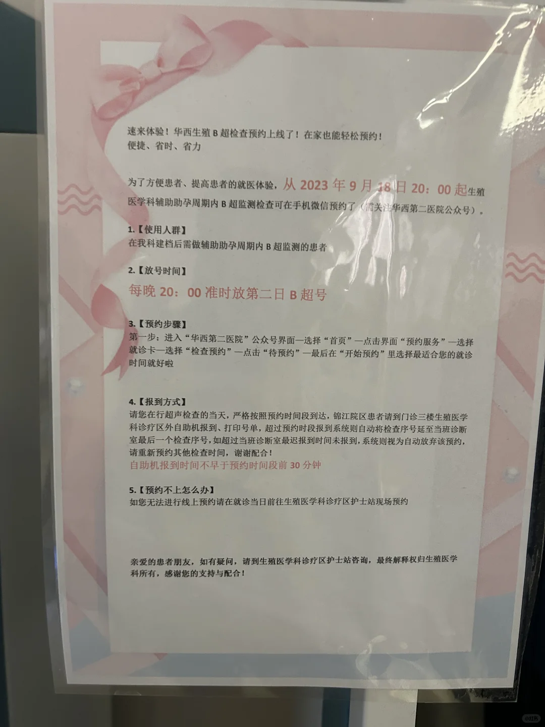 所有报告出来后找医生看报告 医生会打针药品可以自己选择,(我选的果纳芬1460)并告诉你药品注射大概位置、计量,储存方式,到哪里去注射(注射也是需要在签到机上面取号哦)下一次复诊时间并帮你挂好号,挂好了要记得在华西小程序缴费,提前预约B超监测